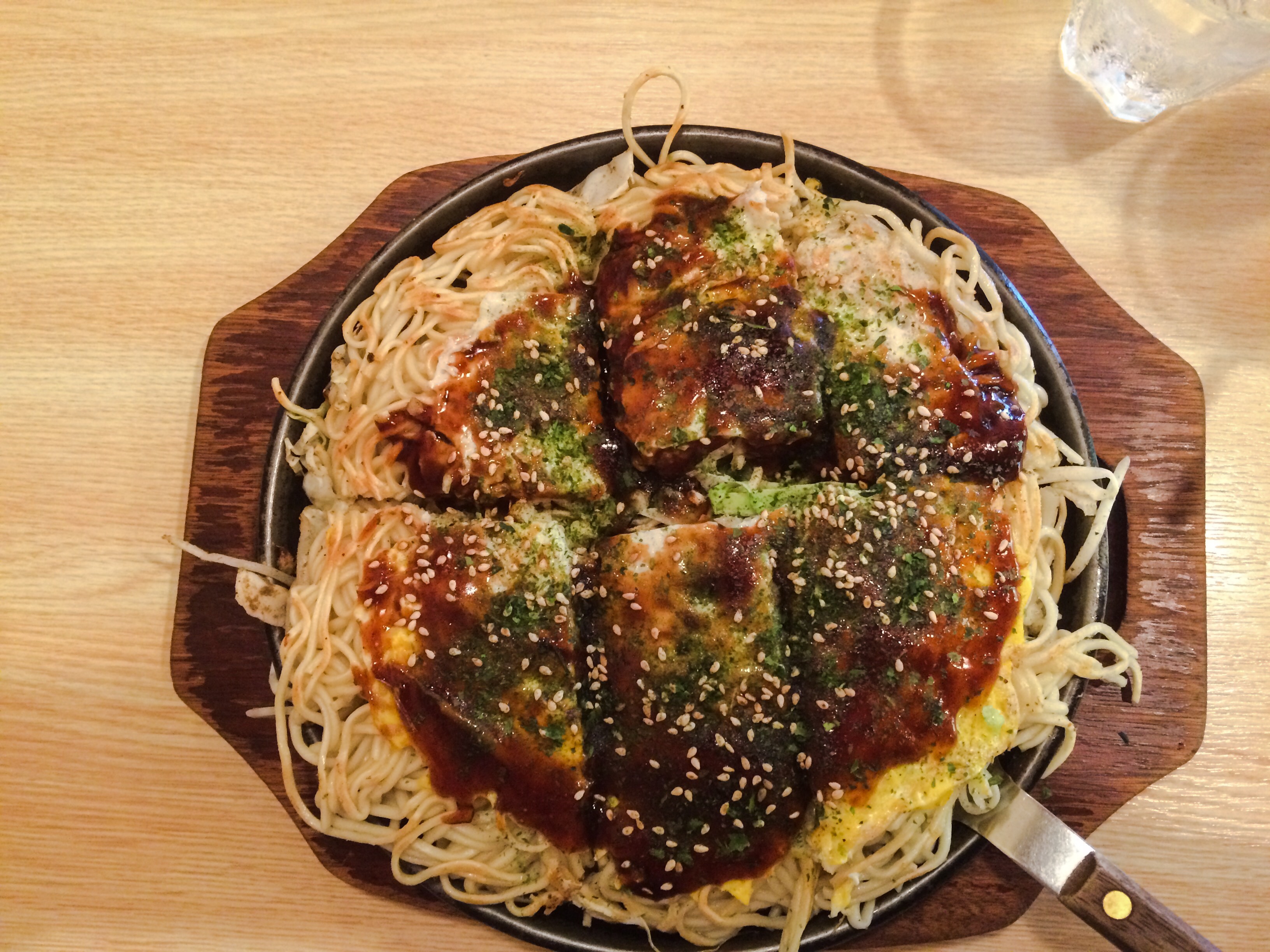 モダン焼きはそばがパリパリで卵ともやしが入ってませんし