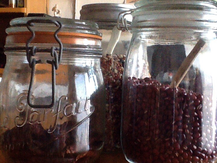 台所で使う豆や雑穀などをビンに入れて見せる収納してますが、
