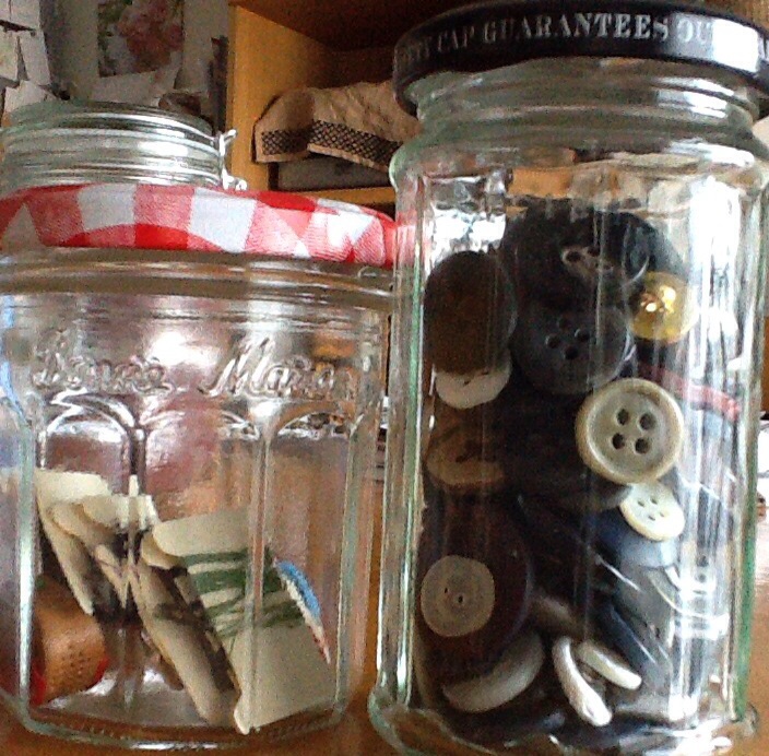 ちなみに洋服を買った時に付いてくるボタンや糸はジャムのビンで出番待ち^_^