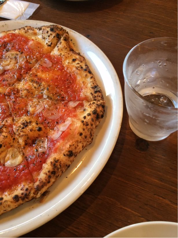 マルゲリータ と言うピッツァと飲み物だけと言うイタリア ナポリ風 私が 一緒にたのむのはミネラルウォーターのガス入り 30センチくらいの大きさなのでいつも、2人で1枚 食べた後は、別腹デザートを食べに^_^
