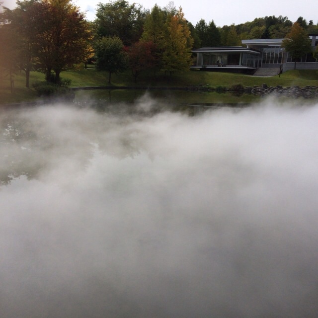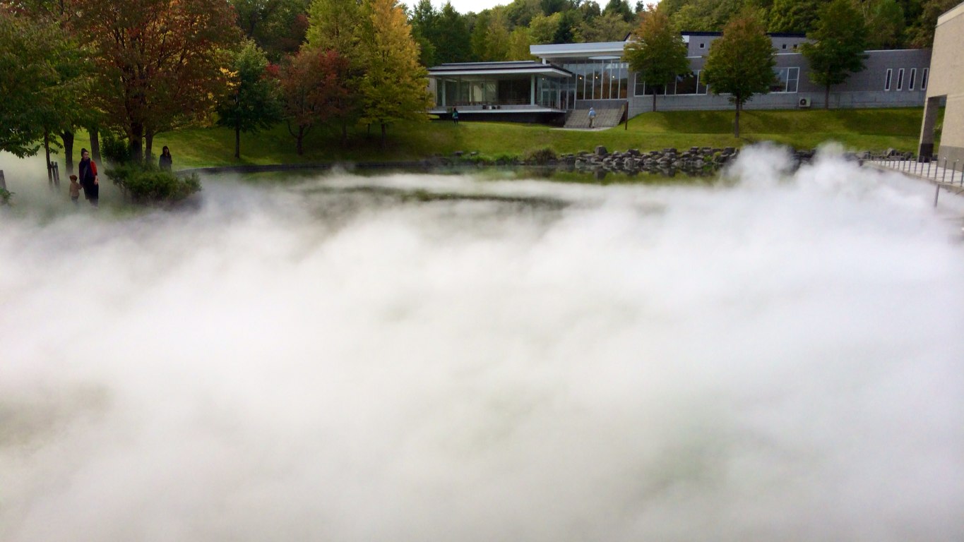 美術館の庭に霧が出てくる作品です。