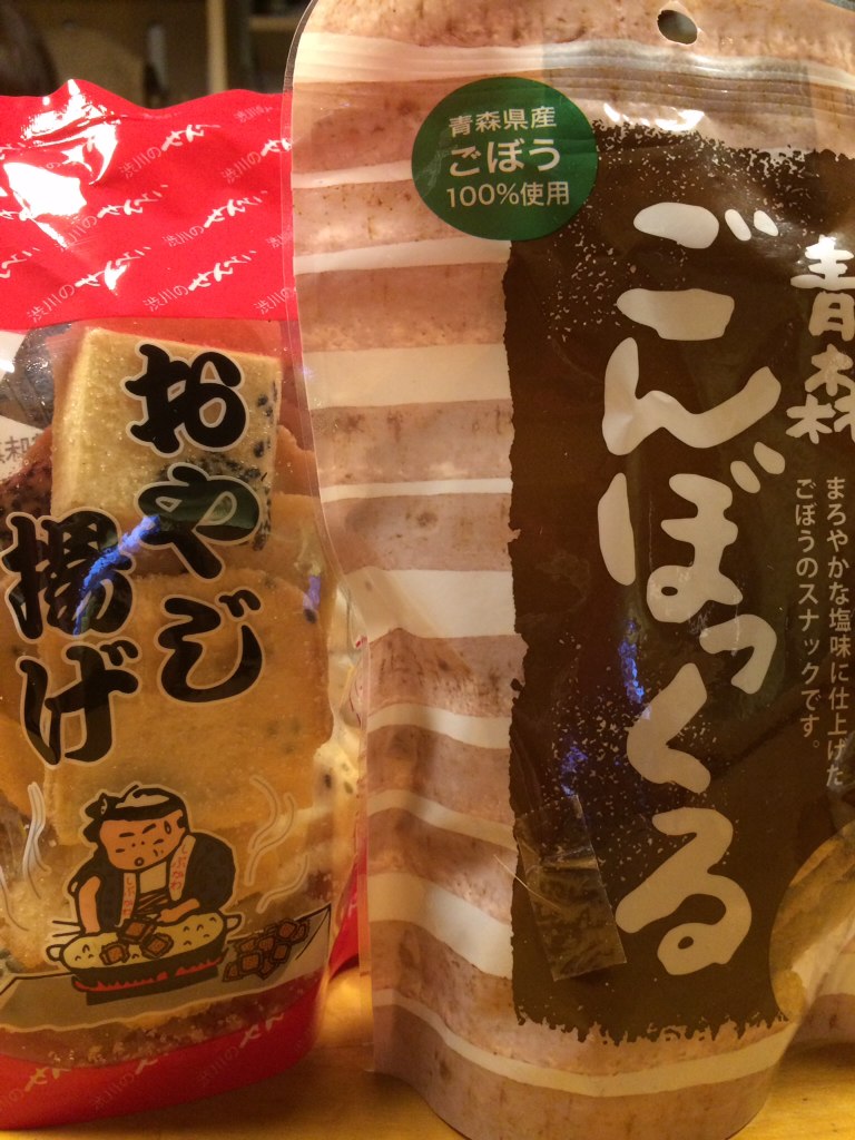 甘塩っぱい揚げ煎餅とゴボウチップス