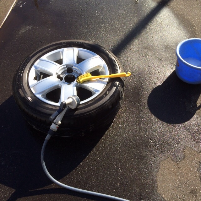 ホイールも鉄粉取りをして、タイヤ洗って片付け