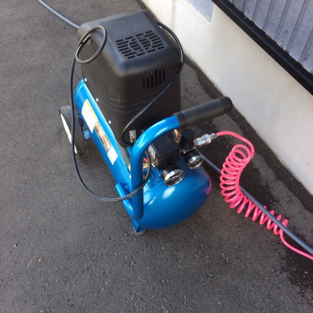 次に、コンプレッサーを使って空気圧を適正値にします。