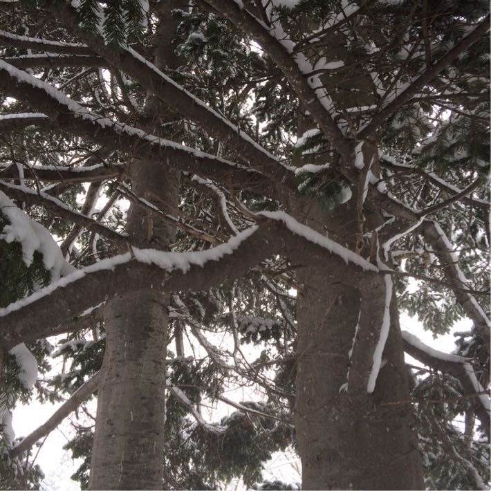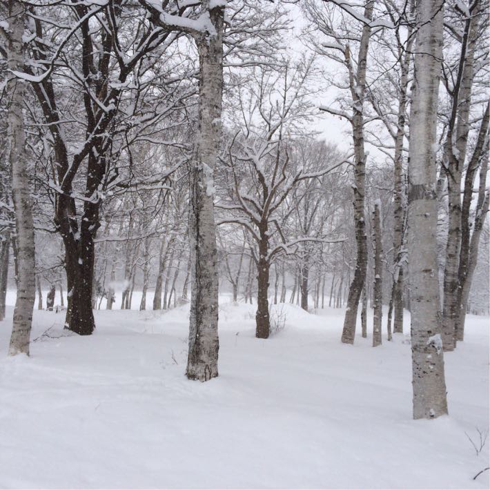 雪をかぶった白樺林は素敵です。