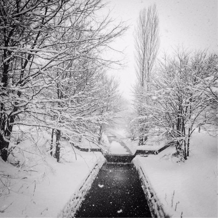学園内を月寒川が流れています。