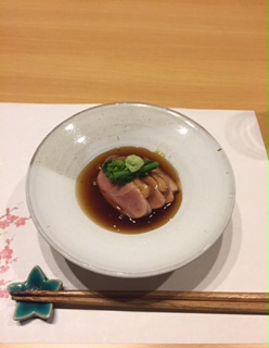 治部煮風鴨肉の上には菜の花