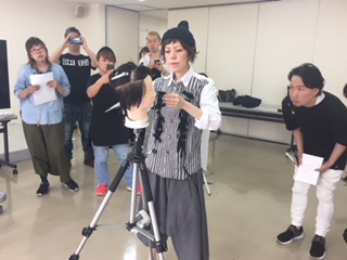 今回は髪が濡れたままカットする部分と乾かしてからカットする部分とに分かれていたので途中でまた先生が実演して細かい部分を色んな角度から見せてくれます。