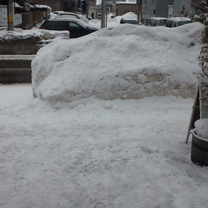 お店の前の雪山です。